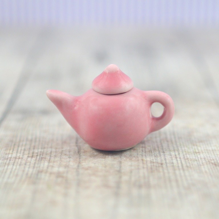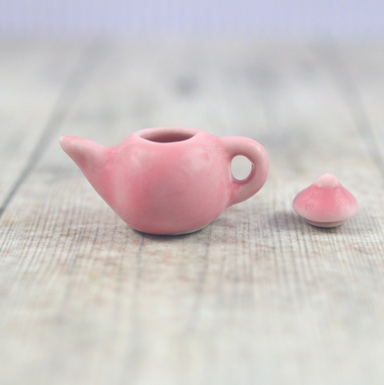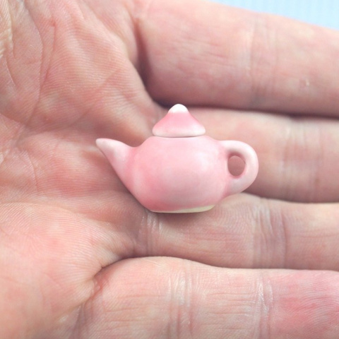 Mini ceramiczny dzbanuszek w kolorze różowym o wymiarach dzbanuszka bez pokrywki 12,5x16 mm