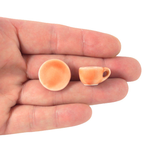 Mini ceramiczna filiżanka łososiowa z talerzykiem