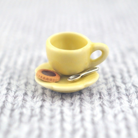 Mini filiżanka ceramiczna z talerzykiem w kształcie kwiatka w kolorze żółtym ,