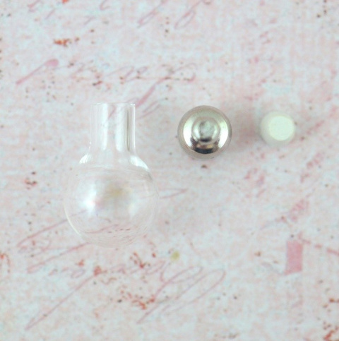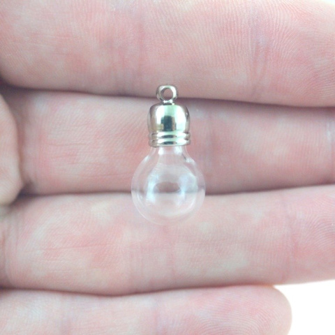 Mini fiolka szklana okrągła kula gładka .wysokość bez gumowego koreczka około 16 mm , średnica 11 mm