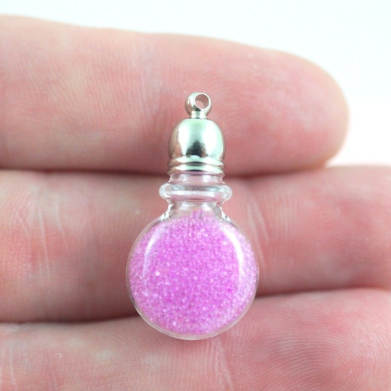 Mini fiolka szklana okrągła płaska z kołnierzykiem ,wysokość bez korka 19 mm .średnica 13 mm ;
