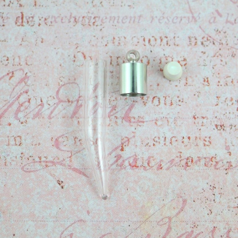 zestaw zawiera 1 szt fiolka szklana ,1szt gumowy koreczek ,1 szt. metalowa końcówka w kolorze srebrnym ,