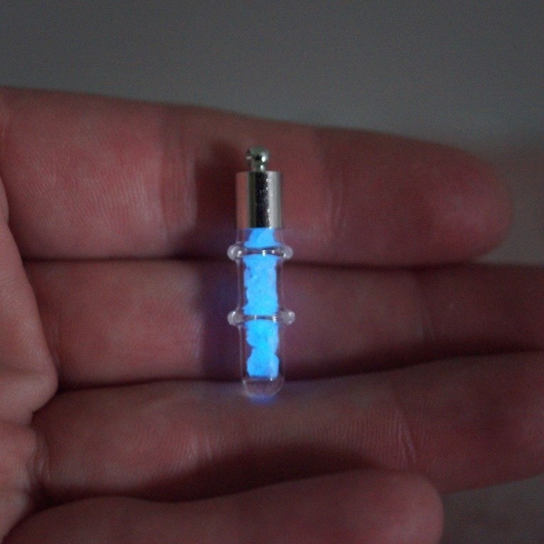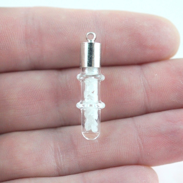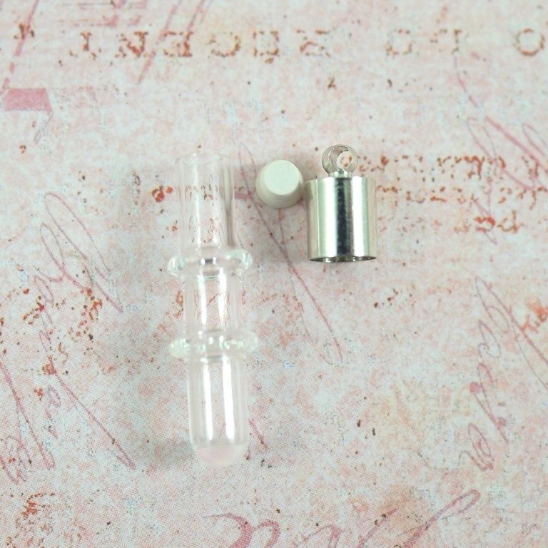 Mini fiolka szklana , gumowy koreczek , metalowa końcówka w kolorze srebrnym