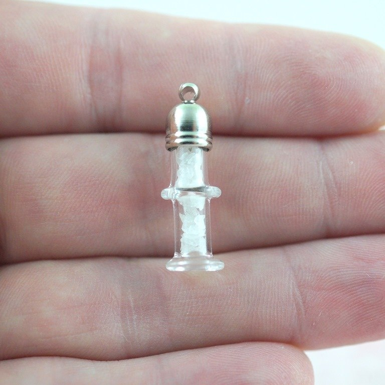 zestaw zawiera 1 szt fiolka szklana ,1szt gumowy koreczek ,1 szt. metalowa końcówka