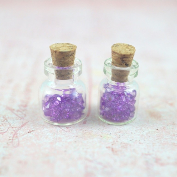 Mini kryształki w kolorze fioletowym o wymiarze 3 mm.( mogą posłużyć jako miniaturowy lód owocowy do wypełniania buteleczek ,fiolek lub deserów )