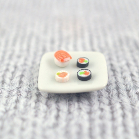 Mini kwadratowy porcelanowy talerzyk do ulubionej sushi maki