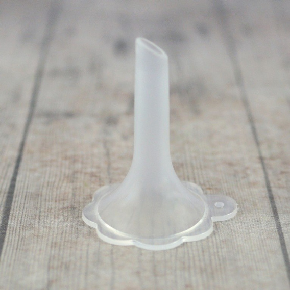 Mini lejek plastikowy w kolorze transparentnym w kształcie kwiatka , średnica zewnętrzna 30 mm , długość 40 mm ,.średnica zewnętrzna wylotu lejka 7 mm. Idealnie nadaje się do napełniania mini buteleczek.