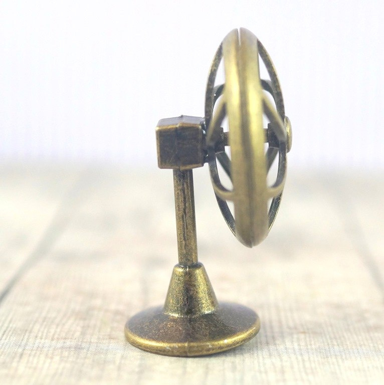 Mini metalowy wentylator (ruchomy wirnik) miniatura do domku dla lalek , wysokość 44 mm , średnica podstawy 19 mm , średnica zewnętrzna wirnika 30 mm. Skala domku dla lalek 1/12.