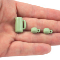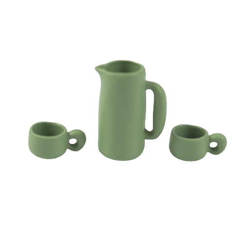Mini metalowy zestaw do herbaty w kolorze jasno zielonym- zestaw zawiera: dzbanuszek , wysokość całkowita 18 mm , dolna średnica 9 mm , dwa kubeczki o wysokości 6 mm i średnicy 8 mm . Bardzo mała miniatura do domku dla lalek 1:12.