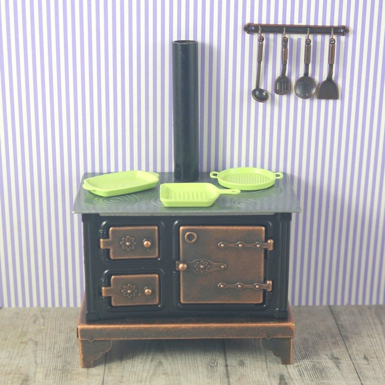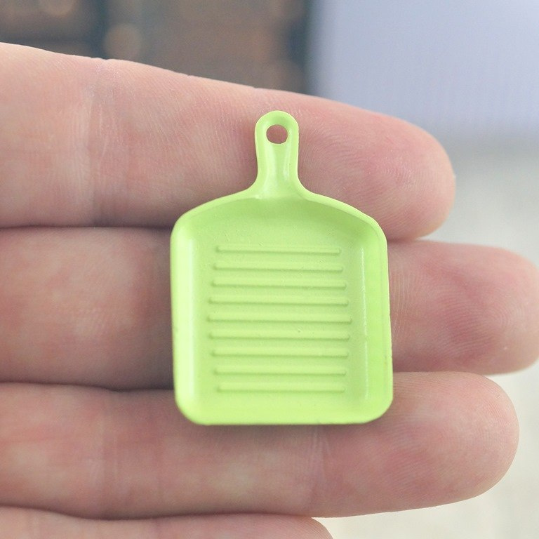 Mini patelnia grillowa metalowa pistacjowym w kolorze o wymiarach 36x24x4 mm Skala domku dla lalek 1/12.
