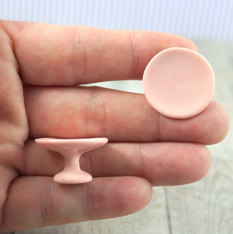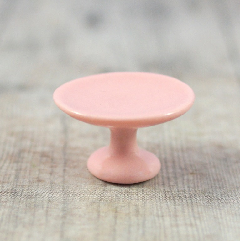 Mini patera ceramiczna w kolorze różowym . Skala domku dla lalek 1:12 , wysokość 15 mm , dolna średnica 14 mm , górna średnica 25 mm.