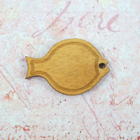 Miniaturowa deseczka o kształcie rybki wykonana z drewna o długości 21 mm ,szerokości 14 mm i grubości 1,5 mm . Deseczka bez dodatków.