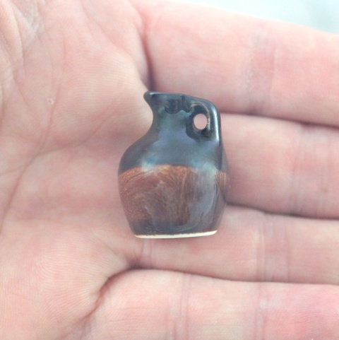 Mini dzbanek porcelanowy w kolorze brązowym . Skala domku dla lalek 1:12 , wymiary podane na zdjęciu.