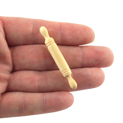 Miniaturowy wałek do ciasta , wykonany z drewna. Średnica 6,8mm , długość 50mm . Wyposażenie domku dla lalek skala 1:12.