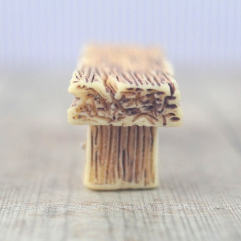Mini ławeczka ogrodowa w stylu japońskim , wykonana z żywicy imitującej drewno, długość 57 mm , szerokość 19 mm , wysokość 20 mm ,skala domku dla lalek 1:12.