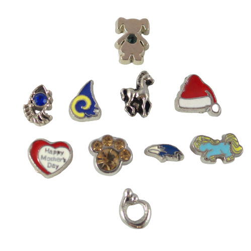 Zestaw ozdób do sekretnika - 10 szt. wykonane ze stopu metalu , ozdobione cyrkoniami , emalią itd. Wymiar pojedynczej ozdoby to ok. 9x6x2 mm. Zdjęcie główne pokazuje konkretny zestaw do sprzedaży.