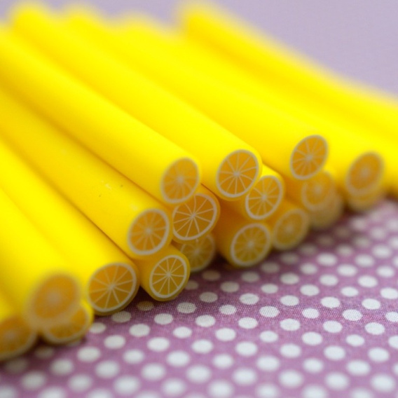 Pałeczka fimo cytrynka  o średnicy około 0,5cm i długości 5cm.