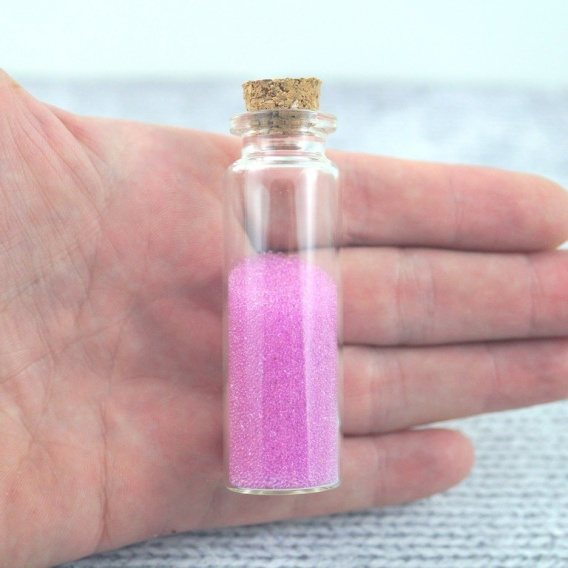 Słoiczek szklany o wymiarach 67x22 mm, średnica otworu do korka 12 mm.