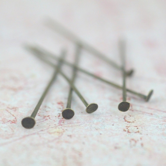 Szpilki w kolorze starego złota, z płaską główką o długości 35 mm , cena za  30 szt.