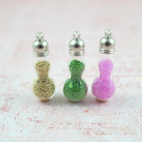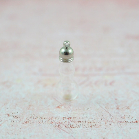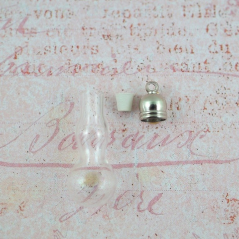 ozdobna metalowa końcówka w kolorze srebrnym , koreczek gumowy, bańka szklana