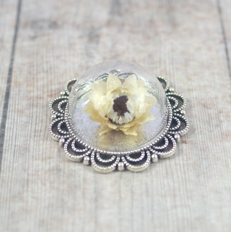 Wisiorek z półkulą szklaną z możliwością wypełnienia miniaturowanymi kwiatkami .