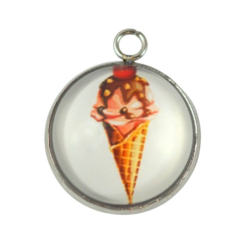 Wisiorek z kaboszonem LÓD  - średnica kaboszona 14 mm , oprawa wykonana ze stali nierdzewnej.