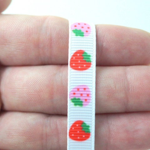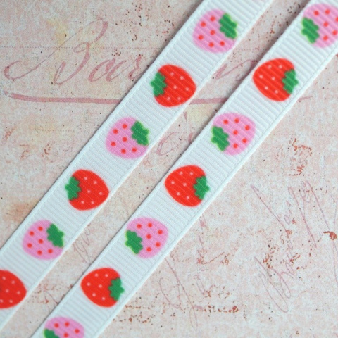 Wstążka truskawki i poziomki , szerokość 9 mm . cena za 2 m.