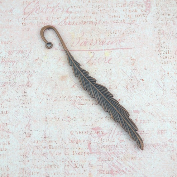 Baza zakładki do książek w kolorze miedzianym ,w kształcie pióra łabędzia o długości 79 mm.