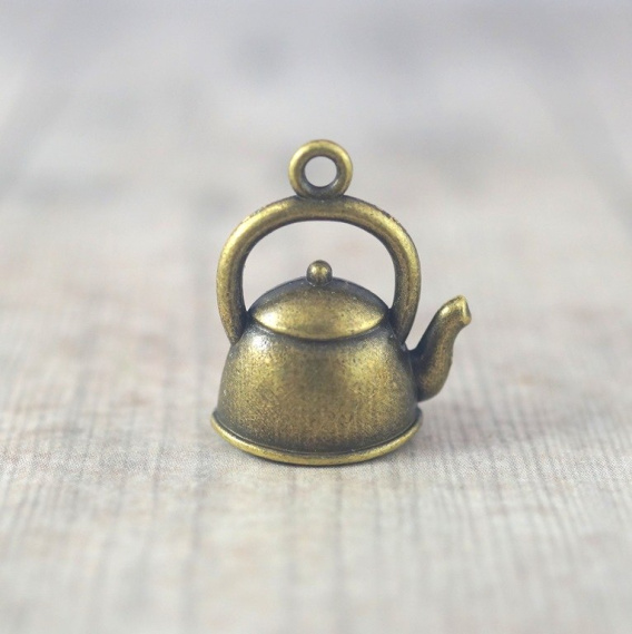 Zawieszka czajnik dwustronna w kolorze starego złota o wymiarach 20x17x10 mm