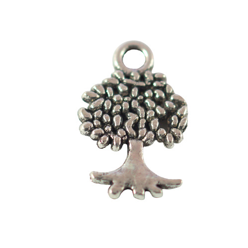 Zawieszka dwustronna drzewo życia w kolorze srebrnym o wymiarach: 13x8x1,3 mm.