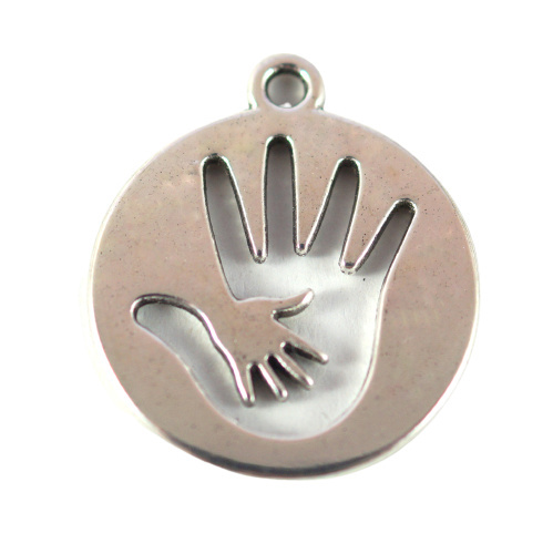 Zawieszka dwustronna w kolorze srebrnym ,o wymiarach 23x20x1,4 mm.