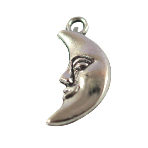 Zawieszka dwustronna księżyc w kolorze srebrnym ,o wymiarach 19x9x3,3 mm.