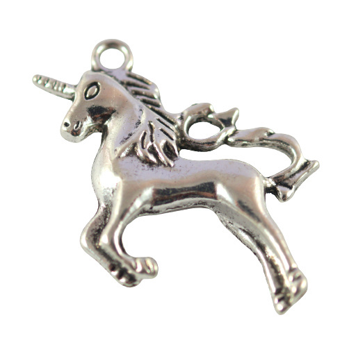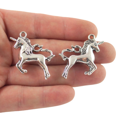 Zawieszka dwustronna jednorożec w kolorze srebrnym. Wymiary 36x32x6 mm , cena za 1 sztukę.