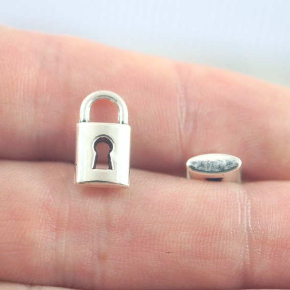 Zawieszka kłódka w kolorze srebrnym o wymiarach 14x8x3mm