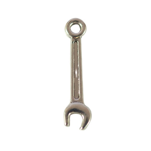 Zawieszka dwustronna klucz płaski w kolorze srebrnym ,o wymiarach 24x6x2,2 mm. Cena za 1 szt.