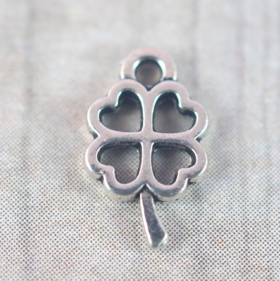 Zawieszka koniczynka w kolorze srebrnym , o wymiarach 10x6x1,2 mm. Cena za 2 szt.