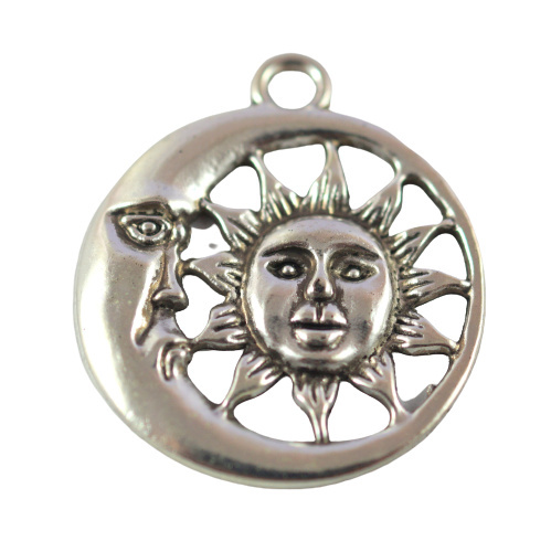 Zawieszka jednostronna słońce i księżyc w kolorze srebrnym ,o wymiarach 28x24x2 mm.