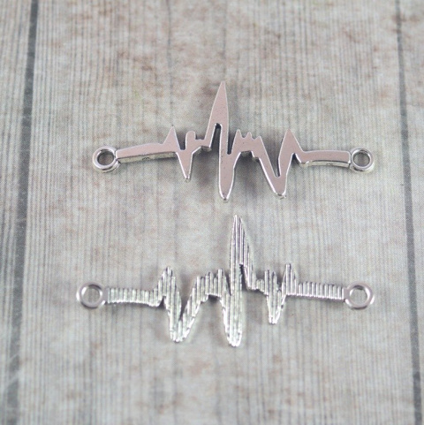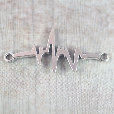 Zawieszka EKG ŁĄCZNIK w kolorze srebrnym, o wymiarach 44 x 20 x 2 mm