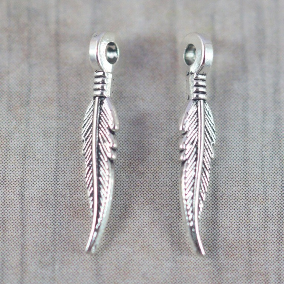 Zawieszka srebrna dwustronna małe piórko o wymiarach 16x2 mm , cena za 2 szt.