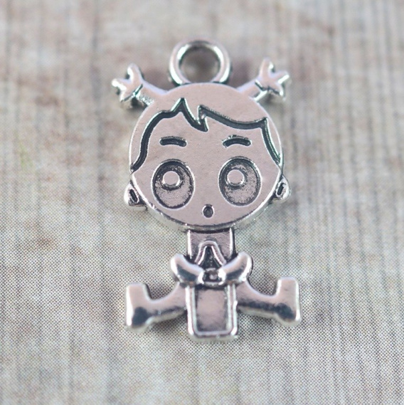 Zawieszka dwustronna bobas w kolorze srebrnym o wymiarach 22x13x2,6 mm