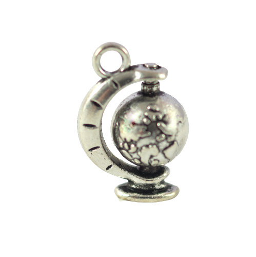 Zawieszka globus w kolorze srebrnym - kula ziemska ruchoma , wymiary 18x12x8,5 mm,