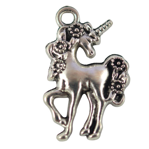 Zawieszka jednostronna jednorożec w kolorze srebrnym o wymiarach 23x14x2,7 mm