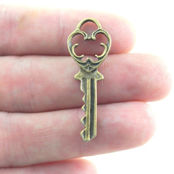 Zawieszka metalowa klucz, w kolorze starego złota o długości 38 mm.