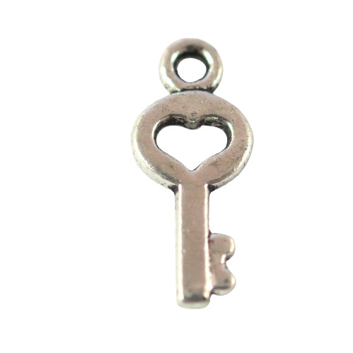 Zawieszka kluczyk w kolorze srebrnym , o wymiarach 15x7x1,7 mm .