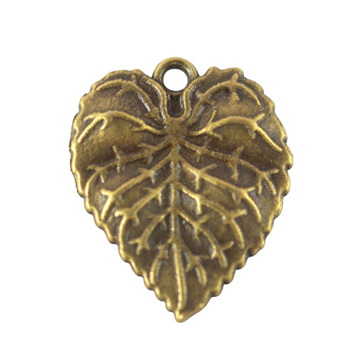 Zawieszka jednostronna liść w kolorze starego złota , o wymiarach 25x22x1,8 mm.