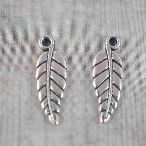 Zawieszka liść w kolorze srebrnym o wymiarach 19x7x1,3 mm