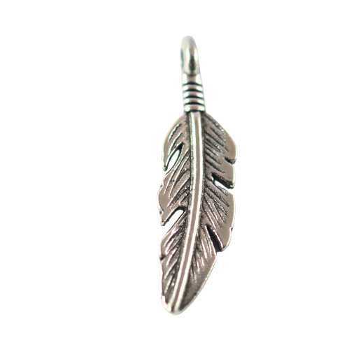 Zawieszka piórko w kolorze srebrnym o wymiarach : 23x61,7 mm.