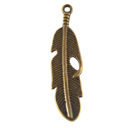 Zawieszka dwustronna pióro w kolorze starego złota ,o wymiarach 48x13x2,3 mm
