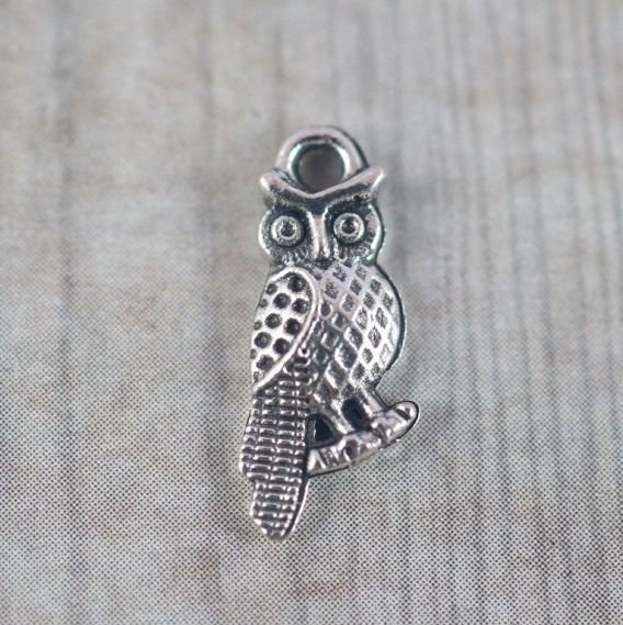 Zawieszka jednostronna sowa  w kolorze srebrnym o wymiarach 16x7x2,5 mm