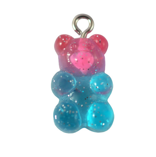 Zawieszka miś czerwono niebieska brokatowa , wykonana z żywicy o wymiarach 18x11x7 mm , posiada zamontowaną wkrętkę.